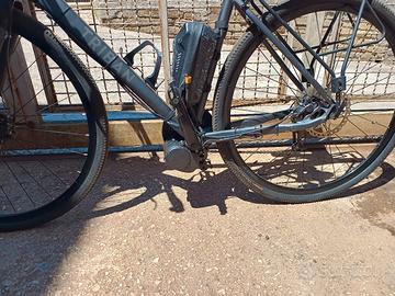 triban RC 500 con motore centrale tsdz2, batteria 470watt pochi cicli di carica,montata gravel,taglia L,freni idraulici Shimano a disco l,cambio Shimano 10 v nuovo, catena nuova,gomme nuove gravel con pochi km,disponibile a spedire a carico dell' acquirente . bicicletta elettrica