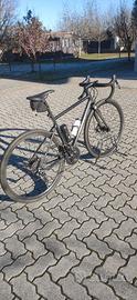 Vendo causa inutilizzo Triaban RC500, taglia S, montata Shimano SORA 2x9 50/34, freni a disco meccanici, tutta originale, tenuta bene con pochi km. Monta copertoni Vittoria Terreno 700x35 grl, disponibili copertoni e camere originali. Poco trattabile. Non spedisco.