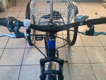 vendo per inutilizzo , bici a tre ruote a 7 velocità, triciclo con ammortizzatore da montagna per adulti da 26 pollici per anziani e bambini con cestino della spesa . usata poco prezzo trattabile lascio il numero 3668724847