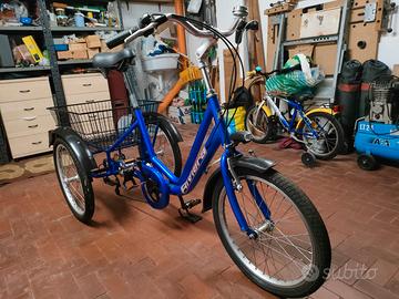 TRICICLO ADULTI OLMO RIVIERA , DA PASSEGGIO USATA MOLTO POCO ADATTA PER SPOSTAMENTI CITTADINI , ZONE TURISTICHE CAMPEGGI , TENUTA SEMPRE AL COPERTO , IN PRATICA PARI AL NUOVO .