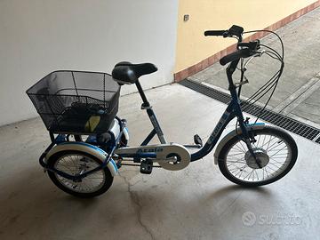 Triciclo Elettrico a pedalata assistita , ma va anche senza pedalare, con cesto cargo posteriore . Batteria ricaricabile che si puo anche staccare e ricaricare in casa. Triciclo in ottimo stato. Praticamente come nuovo, usato poco, batteria in ottimo stato. Pagato nuovo da Atala in fabbrica 1349,00€. Vendo a 949,00€. Contatti solo via messaggi Whatsapp, grazie.