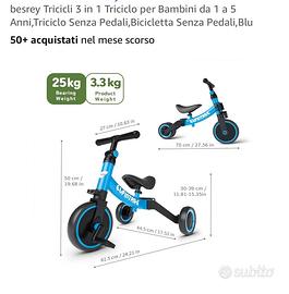 Triciclo bici da bimbo con e senza pedali. Facile da utilizzare e con diverse posizioni.