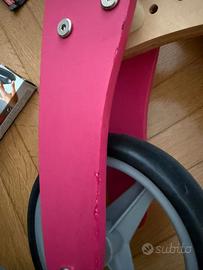 Nicko Balance Bike MINIBIKE 2 in 1 – Bicicletta triciclo 18M+ con struttura in legno – Rosa – La mini bike 2 in 1 accompagna il bambino nel passaggio dal triciclo alla bicicletta aiutando il bambino alle prime armi a stare in equilibrio. E' infatti studiata e progettata per consentirne in un attimo la trasformazione da una bici a 3 ruote ad una a 2 ruote, accompagnando così i bambini nello sviluppo dell’equilibrio e delle capacità motorie. Pensata per bambini tra i 18 e i 36 mesi. Portata massima 20 Kg., sellino rivestito in ecopelle e regolabile in due altezze, manubri in gomma TPE, struttura in compensato di betulla e lano massello di acero cinese, ruote in EVA foam. Dimensione triciclo 62,5 x 35,5 x 38 cm., dimensione bicicletta 62,5 x 12,5 x 38 cm.