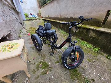 Usata 2 volte e parcheggiata in cortile. Funziona tutto. Volendo potrei anche spedire ma devo smontarla e fare il pacco. Quindi un 3 o 4 giorni per prepare tutto. Inoltre costa molto. Quindi in base a dove siete vi comunicherò il prezzo. È molto robusta e pesante. Dettagli tecnici: Bicicletta elettrica Trike Elettrico ZT-80A Mini Trailer ZTECH 250W 48V 13Ah Il massimo della comodità, dello stile e della capienza. Potente motore brushless da 250W per tutti i tuoi spostamenti fino a 25KM/h, in tutta sicurezza! Potentissima! Va in tutte le salite. Tipo di motoreMotore Brushless Potenza250W Tensione del motore48V Velocità25 chilometri all'oramax CaricoMax110 kg Dimensionidella ruota20" Dimensionepneumatici4 Freno anterioreFreno a disco Freno posterioreFreno a disco Tipo di batteriaIoni di litio Capacità della batteria13 Ah Voltaggiobatteria48V Quantità di batterie1 Peso netto36 kg