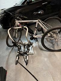Vendo triciclo elettrificato da passeggio ( o paratriathlon) + portabici, per inutilizzo. La bici è una techno bike, il motore è un “8fun”, la batteria è una “futur&bike” (non l’ho portata a revisionare, quindi non so quale sia il suo stato - non garantisco, vista e piaciuta), ciò che la fa fungere da triciclo è un pezzo a sé: il suo nome è un kit "Furioso" della “Pfiff”, il portabici è della “ Peruzzo”: Euro 600 trattabili.