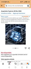 Vendo ottimo triciclocysum T1 Pro triciclo elettrico per adulti, 16 pollici 3 ruote bici elettrica pieghevole, batteria al litio da 48 V 22 Ah, motore da 250 W, triciclo elettrico da carico donna uomo Assolutamente legale no multa