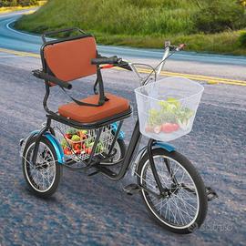 Triciclo per adulti, 20 pollici, 3 ruote con ruota anteriore da 20 pollici, ruota posteriore da 16 pollici, bicicletta per anziani regolabile, schienale, cestino per la spesa.