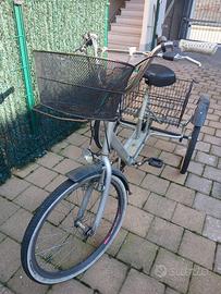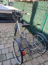 Vendo triciclo per adulti/anziani. Ruote da 24, cambio Shimano a 6 marce. Modificata per salita facilitata. Tenuta bene. No spedizione. Chiedere di Teresio.