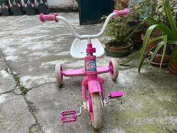 Triciclo rosa e bianco in buone condizioni.