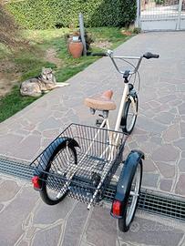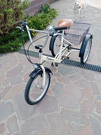 Vendo triciclo rosignoli da adulti. Cesto posteriore portata 150 kg. Cambio Shimano 6 marce, luci e cestino anteriore. Pronto all' uso