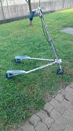 Trikke monopattino particolare con doppio appoggio per i piedi, con una spinta si fa partire e giocando con il manubrio si mantiene il movimento. Manubrio regolabile in altezza adatto ad adulti e ragazzi usato tanto cedo per crescita dei figli. Le "gambe" si possono piegare per permettere di riporlo in luogo più stretto. Consegna a mano