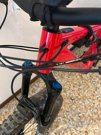 La Turbo Levo Comp con telaio in lega M5 monta la trasmissione SRAM GX Eagle a 12 velocità e sospensioni FOX Performance, batteria 700Wh. ruote differenziate - posteriore da 27.5" e anteriore da 29".