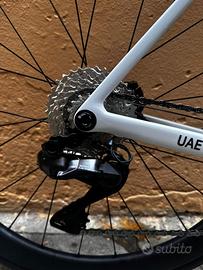 Colnago V5RS Ultegra DI2 12 sp Colorazione UAE Campione del Mondo Taglia 51 ( persone alte da 1,75 a 1,79) Guarnitura 52-36 Pacco Pignoni 11-30 Manubrio 41-110 Drop 122 Reach 80 Ruote Vision SC-45 Prezzo Listino 10.800 Disponibile 7250