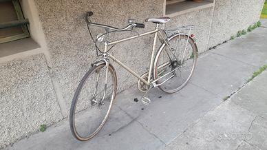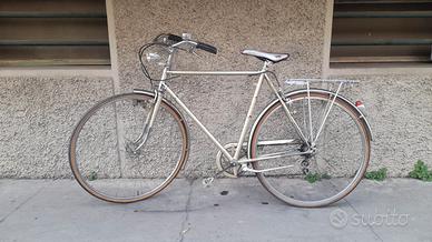 Elegante bicicletta uomo raggio 28 in ottime condizioni, colore originale, cambio a canna 5 rapporti tutti funzionanti, con portapacchi, cavalletto, campanello, luce, sella imbottita, lucchetto blocca ruota posteriore, freni nuovi e gomme ottime, pronta all'uso. la bici è davvero in ordine, leggera e maneggevole da guidare, ideale per muoversi velocemente in città e passeggiate, si trova a castelmaggiore, facilmente raggiungibile in treno da Bologna e ritorno dove puoi caricare anche la bici.