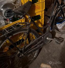 Vecchia bicicletta olimpia. La carrozzeria è ben conservata mentre sono da sistemare freni e gomme.