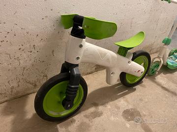 Bellissimo velocipede bimbo, colore verde/bianco ottimo per trovare l’equilibrio per i bimbi per poi passare alla bicicletta a pedali senza l’utilizzo delle rotelle