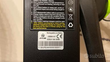 Batteria da 36 V, 14Ah, 504Wh celle SAMSUNG. Completa di scatola accessori (caricabatterie, pedali e libretto d'uso e manutenzione).