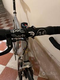 Vendo bici completa Telaio VETTA custom taglia 54 geometrie da pursuit Tubazioni Deda Force Pipa e manubrio Deda 35 Reggisella full carbon Deda Drittissimo Guarnitura On-One con perno passante Pedali Shinano SPD 520 bianchi Sella Selle Italia SLR Max Flow Ruote Gipiemme Pista (includo anche quella anteriore) con mozzo flip-flop (per montarla con ruota-libera single speed) Ruota ant Shimano radiale con raggi aero
