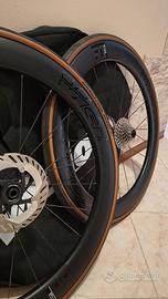 Vendo vision metron 60 sl, corpetto Shimano, davvero ottime condizioni, complete come in foto, pacco pignoni e dischi Shimano Ultegra nuovi, borse comprese, copertoni Continental 5000 semi nuovi anch'essi.