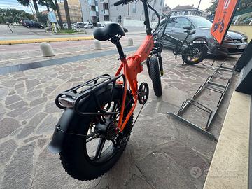 Vitilan v3 fat Bike FINANZIABILE SENZA BUSTA PAGA Batteria: batteria al litio da 48 V 13 A Autonomia in miglia: 48+ km Motore: 750W (picco 1200W) Motore senza spazzole Acceleratore: acceleratore a mezza rotazione Livello di pedalata assistita: livello 1~5 Forcella anteriore: forcella anteriore con sospensione meccanica Sella: morbida pelle PVC Pedale: Pedali in lega semi-alluminio Manovella: lega forgiata da 170 mm Freno: Freno a disco idraulico Default Speed: 25KM/H Maximum throttle speed when unrestricted: 45KM/H Charger: 48V 2.0 A Smart Charger Controllore: 48 V/25 A Capacità di carico utile massima: 330 libbre Altezza del ciclista consigliata 5'4" ~ 6'5" Pneumatici: CHAOYANG 20" x 4" Pneumatici Grassi Sistema di cambio marcia: cambio Shimano a 7 velocità Luce posteriore: indicatore di direzione/luce LED 48 V Luce frontale: luce LED da 48 V Luce anteriore: luce LED da 48 V E' sempre possibile ritirare la bici presso il negozio, montata e senza costi di spedizione ovviamente.
