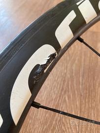 Vendo due ruote posteriori alto profilo Vittoria Qurano in carbonio/grafene per copertoncino e pista frenante sul cerchio entrambe DANNEGGIATE: