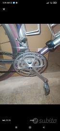 componentistica nuova guarnitura tripla sugino oktalink 50 40 30 trasmissione microshift pacco pignoni nove velocità freni tektro Ruote Ambrosio futura a profilo alto taglia 56.