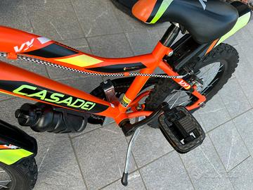 Bicicletta per bambino 16 pollici. Tenuta molto bene, qualche segno di usura sugli adesivi. Pedali cambiati qualche mese fa. Borraccia campanello e cavalletto come accessori compresi. Preferisco ritiro a mano.