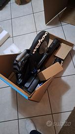 Vendo rulli wahoo kickr move rullo ultimo uscito in casa wahoo il top in assoluto. assolutamente pari al nuovo usato pochissimo o forse nulla. Compreso di scatola originale e tutti i suoi accessori a corredo . rullo ancora in garanzia Con l'introduzione del movimento longitudinale, il trainer per bicicletta KICKR MOVE consente alla tua bicicletta di muoversi in modo naturale per un'esperienza di guida più confortevole e realistica che mai. NOVITÀ: il movimento longitudinale di 8" (20 cm) risponde ai cambiamenti del ritmo di guida La base KICKR MOVE consente ulteriori movimenti laterali e i piedini AXIS regolabili Autocalibrazione e aggiornamenti del firmware Funzionamento quasi impercettibile Specifiche tecniche Uscita potenza massima: 2200 watt Grado simulato massimo: 20% Pendenza minima simulata: -10% Peso del prodotto: 64 lb / 29 kg Trasmissione: Trasmissione a cinghia Tipo di resistenza: elettromagnetica Precisione della potenza: +/- 1% preferisco ritiro a mano . € 750
