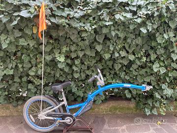 Rimorchio bici si fissa rapidamente a quasi ogni bici. Manubrio completamente regolabile, come la sella , di solida qualità. Per i bambini da 4-10 anni. Prezzo acquisto 300€