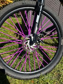 freno posteriore: shimano mt200 ruote: Lagos 27.5 sella: mafia bike (presenta un piccola stappo) copriraggi viola sticker moto export manopole viola e nere manubrio cambia colore in base alla luce 3 corone e 7 velocità attacco manubrio viola e nero pedali con colori misti (principale viola) SPEDIZIONE DISPONIBILE A CARICO DELL'ACQUIRENTE (CIRCA 30€) PREZZO TRATTABILE PER ALTRE INFORMAZIONI SCRIVETE