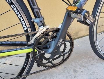 Bicicletta Whistle Racing Modoc Bici ibrida da strada completamente in alluminio, leggerissima, taglia M. Tecnologia super light. Cambio Shimano Claris RD-R2000 8s Colore nero/giallo fluo Completa di borraccia, pompa di gonfiaggio e contachilometri. Tenuta maniacalmente il condizioni ottime, utilizzata raramente per qualche giro su strada. Nessuno graffio o parti rovinate. Solo ritiro. No spedizione. Prezzo non trattabile.