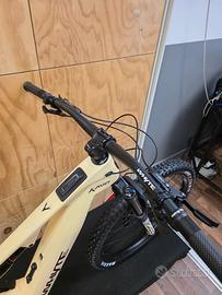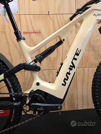 E' la Kado RS ossia la bici con escursione 150mm al posteriore e 160 all'anteriore con motore full power CX Gen5 e batteria da 800 estraibile.Il triangolo anteriore è in carbonio ed il posteriore in alluminio.