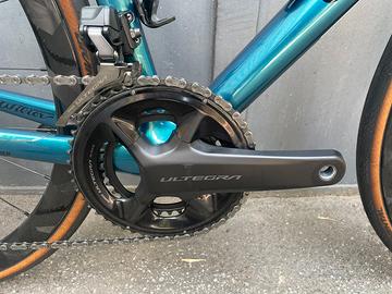 La bicicletta è del 2024 in taglia S tenuta benissimo. Telaio in carbonio Gruppo Shimano Ultegra DI2 2x12 50/34 11/30 Ruote Wilier SLR 38 in carbonio Piega manubrio integrat in carbonio 90x400