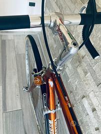 Bellissima bici marca Wilier triestina ramata Cromovelata old in acciaio per eroica. La bici si presenta in buone condizioni Bici venduta come in foto senza pedali. Per altre informazioni scrivimi un messaggio. Taglia 52cm verticale e 53cm orizzontale Ideale per eroica, polverosa, artica e tutte le manifestazioni ciclostoriche. Manubrio rivestito in pelle da artigiano attaccò manubrio 95mm. Telaio IN ACCIAIO ANNI '70/‘80 Taglia 52 tubo verticale 53 tubo orizzontale centro/centro) Davvero molto bella ideale per persone alte da 1.63 a 1,73 Il reggisella è più lungo, quindi adattabile se si necessita di maggiore altezza. La bici è stata completamente ripulita e manca solo un po' di olio nella catena. Prima di fare offerte verificare bene le foto e fare eventuali domande. Non sia ccetta la restituzione dell'oggetto una volta aggiudicato. Si valutano anche scambi con wilier Triestina ramata, Atala, Legnano, Pinarello, Bianchi, Olmo, Masi, Liotto, Losa, Rampon, Berma, Gallesi, Rebellato, Battaglin, Legnano, Francesconi, Rossin, viner, galmozzi, de rosa, colnago, componenti campagnolo ed altro...