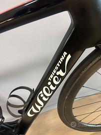 Vendo wilier sl taglia 53, montata shimano ultegra 11v di2, manubrio integrato in carbonio (44 centro centro), ruote in carbonio da 40mm. Pacco pignoni posteriore 11-32 dentri, corone davanti 52/36 denti. Buci tenuta perfettamente sembra praticamente nuova.