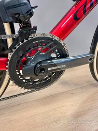 - Gruppo Sram Force AXS con misuratore di potenza nella guarnitura 48/35 a cui è stato fatto upgrade delle leve Force E1 a luglio 2025;