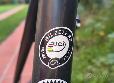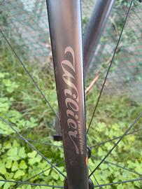 - Telaio in carbonio a vista con verniciatura trasparente, peso 730 g, forcella aerodinamica integrata.