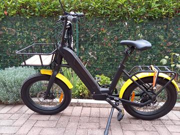 La bicicletta è a pedalata assistita dal colore nero e giallo, è stata acquistata nel 2023.
