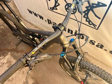 Telaio in ottime condizioni e pellicolato, misura telaio L. La maggior parte dei componenti sono nuovi mai usati: Forcella Fox 36 Performance - Nuova Freni code R - Nuovi Trasmissione completa Sram NX (pedivella/corona - movimento di centro - catena - deragliatore e cassetta tutti originali Sram) - Nuova Reggisella SDG Tellis - Nuovo Ruote Scott syncros canale da 30 - Nuove Dischi Shimano - nuovi Il resto è in ottime condizioni: Manubrio burgtec Ammortizzatore FOX DPX2