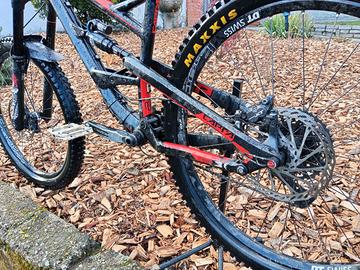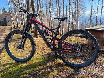 Vendo la mia fantastica Capra da Enduro. Come in foto monta: -Freni Shimano XT 4pistoni, dischi da 203mm, pastiglie fibra di rame. -Forcella Rockshox Lyrik da 170mm con upgrade DebonAir anziché SoloAir, 4token. -Ammortizzatore centrale RockShox Monarch Plus RC3 HV da 165mm. -Telescopico Rockshox Reverb Stealth con manettino idraulico. -Cambio e trasmissione Sram GX 11v con corona anteriore da 32. -Cerchi e mozzi DT Swiss 1900 con gomma Maxxis DHF 2.6 ant e DHR 2.4 post. La bici presenta normali segni di utilizzo come visibile in foto. Mezzo estremamente divertente, un fidato compagno di avventura. Vendo per passaggio a 29". Consegna a mano.