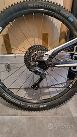 Jeffsy aluminum comp taglia M ruote da 29" Forcella RockShox PIKE regolabile in precarico, freno estensione e 3 posizioni in compressione (libera-pedal-blocco) Pompante forcella con escursione da 150mm (piu' originale da 140mm) Mono RockShox Monarch RT3 regolabile in precarico, ritorno e 3 posizioni in compressione (libero-pedal-blocco) Reggisella telescopico RockShox reverb stealth Monocorona del 32 con 11 46 posteriore, cambio XT Freni xt ant/post con pasticche nuove + 3 coppie nuove imballate + kit spurgo Ruote al 95% Michelin wild AM anteriore e Swalbe nobby nic posteriore (tubeless) La bici necessita solo della manutenzione al reggisella telescopico. Causa inutilizzo regalo: pedali shimano SPD + altri pedali con pin scarpe gaerne SPD 41/42 casco integrale pettorina protezioni gomiti protezioni ginocchia altro attacco manubrio lattice tubeless pompetta per sospensioni chiavi e accessori vari