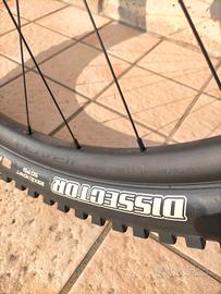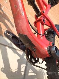 Yt Jeffsy CF in taglia XL (lunghezza reach come L moderna, io sono alto 180cm) Bici comprata usata come kit telaio + ammortizzatore 2 anni fa, l'ho usata circa 5 uscite in totale e poi messa in vendita per inutilizzo. La forcella Fox 34 140mm è stata revisionata da poco, le ruote sono Roval Traverse Alloy con mozzi DT 350 (comprate nuove, usate 5 volte, sono perfette), la trasmissione completa SRAM GX Eagle 12v è usata ma in ottime condizioni, catena sostituita da poco. Freni SRAM Guide R montati nuovi con pastiglie sinterizzate (con 5 uscite) e dischi SRAM HS1 da 200mm. Gomme Maxxis Dissector 29x2.4 Exo/Exo+ seminuove, montate al momento con camera d'aria ma si possono montare tubeless su richiesta. Manubrio Race Face in alluminio diametro 35mm, stem Kona 50mm. Qualche leggero segno sulla vernice sulle parti non protette da pellicola sul telaio, ma in generale la bici si presenta in ottime condizioni. Vendo perché non ho modo di utilizzarla.