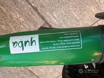 Vendo Yuba Mundo cargo bike in buone condizioni generali, perfetta per trasporto bambini o carichi. Ha un telaio longtail Yuba molto robusto, freni a disco, cambio a più velocità, portapacchi lungo con cuscini per trasporto passeggeri, pedane laterali e capiente cestino anteriore. E’ stata elettrificata con kit Electric Bike Solutions 36V. La batteria è presente e funzionante, ma necessita di revisione/manutenzione dei contatti. Ideale per chi cerca una cargo bike versatile. Consegna a mano a Milano. No spedizioni