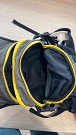 Lo zaino è usato e in condizioni accettabili: non presenta buchi o strappi, la struttura è integra.
