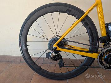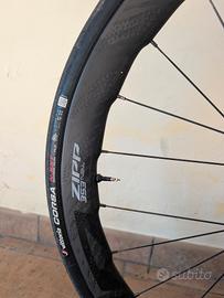 Ruote Zipp 353 NSW hookless in ottime condizioni usate solo su strada. Le ruote vengono vendute con corpetto Sram 12v, valvole e gommate tubeless Vittoria N.ext da 30mm latticizzati (NO DISCHI). POSSIBILITÀ DI VENDERE ANCHE BICI COMPLETA. Per qualsiasi info non esitate a chiedere.