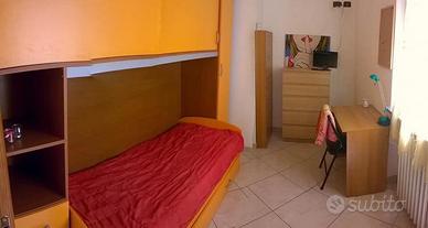 1 stanzetta (9 mq) QUELLA ARANCIONE con doppio letto estraibile, armadio, scarpiera e scrivania; ognuna a 300?.