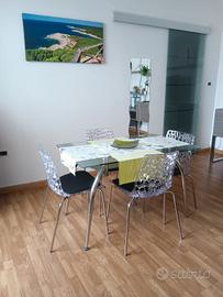 Intero appartamento composto, da una camera matrimoniale, una cameretta, bagno, soggiorno con angolo cottura, un'ampia terrazza. Completamente climatizzato si può soggiornare in totale confort in tutte le stagioni. Posto al primo piano si può usufruire di un servo scala per agevolare ospiti con difficoltà motorie. Si trova sulla strada che porta al mare di Torre Lapillo distante 16km raggiungibile in 15 minuti, distante da Lecce 20km e, varie mete, si possono raggiungere con facilità.