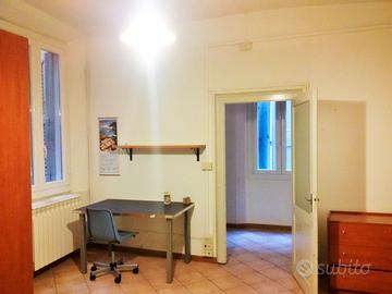 ? Lo stabile di 100 mt. è situato al primo piano di una palazzina in una laterale di Via Zamboni a 5 minuti a piedi dalle 2 torri ed è composto di cinque vani: due stanze (una già occupata), ingresso, soggiorno, cucina, bagno, 2 ripostigli e cavedio stenditoio. Dotato di finestre a doppi vetri affacciate sul cortile interno e molto silenzioso, il riscaldamento è autonomo.