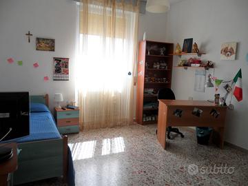 La camera dispone del seguente arredo: letto con comodino, cassettiera, armadio a 3 ante, scrivania con cassetti e sedia ergonomica, libreria, mobiletto porta TV, specchiera lunga.