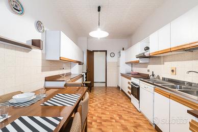 Cucina completamente arredata: tavolo da pranzo, 6 sedie, forno, 2 frigoriferi, piano cottura a induzione, lavastoviglie. La casa comprende tutte le stoviglie necessarie per ogni inquilino.